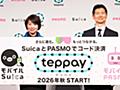 コード決済サービス「teppay(テッペイ)」を発表したJR東日本の中川晴美常務(左)とパスモの町田武士社長(右)(JR東日本提供) JR東日本は11月25日、2026年秋の提供開始を予告していたモバイルSuicaのコード決済サービスの名称が「teppay(テ...