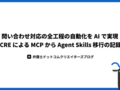 こんにちは、クラウドサインで CRE(Customer Reliability Engineer)をしている藤谷です。 過去の記事では、Slack ワークフローに AI を組み込んで問い合わせの課題整理を自動化した事例を紹介しました。あの時点では、AI は問い...