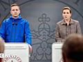 画像説明, 記者会見するデンマーク自治領グリーンランドのイェンス=フレデリク・ニールセン首相(左)とデンマークのメッテ・フレデリクセン首相(13日、コペンハーゲン) デンマーク自治領グリーンランドのイェンス=フレデリク・ニールセン首相は13日、もし「今ここで」...