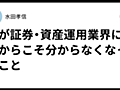 業界に長く専門知識があるからこそ、分からなくなったこと以前のノートで、AIJ事件の本質的な原因や社会が解決すべき課題が、証券や資産運用の業界にいたからこそ分からなくなってしまっていたと書いた。こういうことは何度も経験し、そのたびに反省した。専門を極めてるからこ...