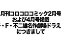 いつもコロコロコミックをご愛読いただきありがとうございます。 2026年1月15日発売の「月刊コロコロコミック」2月号と3月13日発売の「月刊コロコロコミック」4月号に掲載した「藤子・F・不二雄名作劇場ドラえもん」は同一作品であり、二か月という短い期間で同じ作...